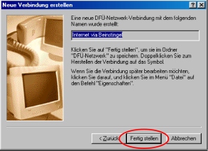 Ihrer Internetverbindung. Klicken Sie dazu auf |Fertigstellen|.