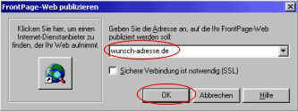 Es ist uns bekannt, daß die Software vom Hersteller leider recht unzureichend dokumentiert ist. Sollten Sie trotz obiger Anleitung Probleme beim Publizieren mit Frontpage haben, so müssen wir Sie bitten, bei Bedarf den Produktsupport von Microsoft zu nutzen, da wir nicht den Support für Produkte übernehmen können, die nicht aus unserem Hause stammen.