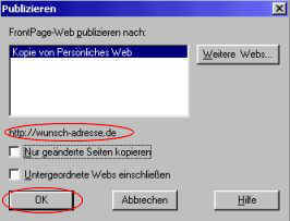 |Datei| und anschließend auf |FrontPage-Web publizieren|.